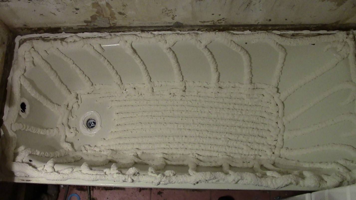 Важно! Пену наносить без разрывов, сплошными линиями и без пустот. В противном случае под весом воды и вашего тела в таких местах вкладыш станет прогибаться, что может привести к преждевременному износу изделия