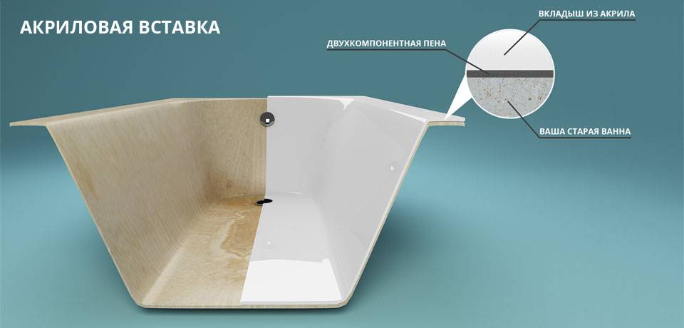 Реставрация старой сантехнической емкости таким способом широко используется в Америке, Европе, а также в России. С помощью акриловой вставки можно без лишней грязи добиться высококачественного результата.