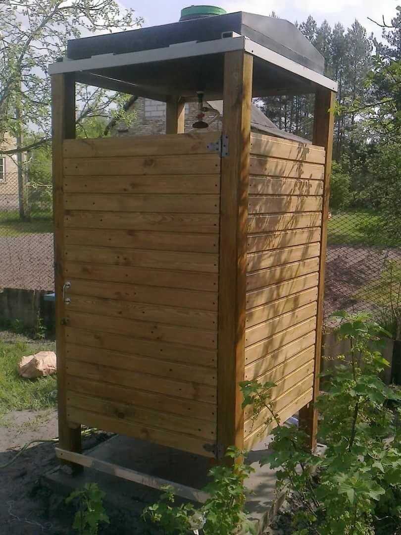 Лучше в плане эксплуатации пластиковые баки для душа. Они химически нейтральны, не вступают в реакцию с водой, не ржавеют. Единственное, что их может разрушить — сильный удар и мороз. И то, есть полимеры, которые выдерживают температуру до -30°C. А если и нет, то емкость надо убирать на зиму на хранение, ведь зимой вы все равно душем на улице пользоваться не будете.