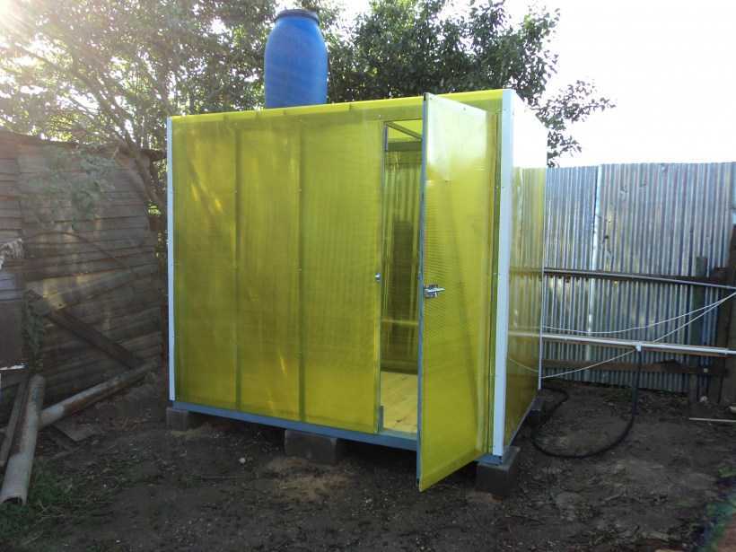 Если нагретая солнцем вода частично пойдет на полив огорода, то емкость бака должна быть максимальной – 200-250 литров. Для помывки одного человека по санитарным нормам достаточно 35 литров воды. Исходя из этой цифры, нетрудно определиться с минимальным объемом душевого бака для семейного пользования.