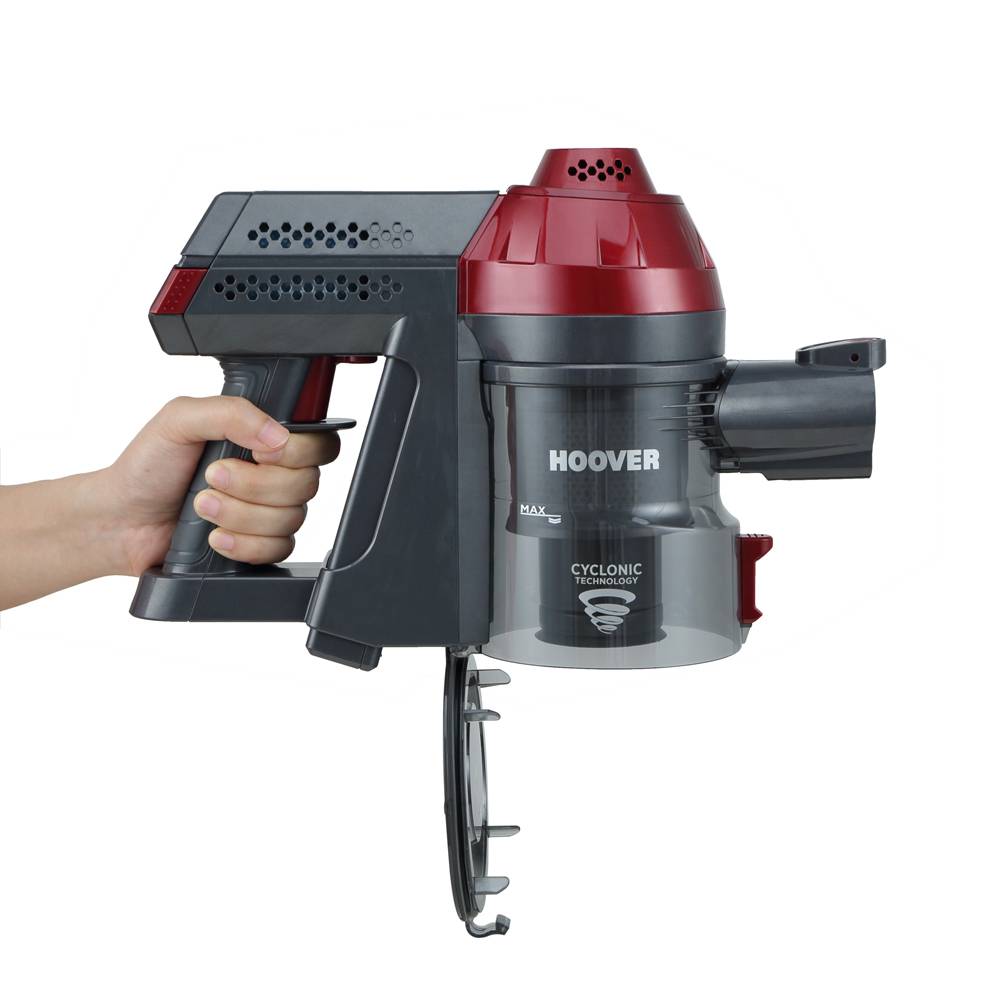 Модель с мощностью всасывания 25 Вт. Трубку можно отсоединять, что позволяет выполнять ручную уборку. Несмотря на низкую стоимость, в устройство установлен литий-ионный аккумулятор на 1 800 мАч, который обеспечивает 38 минут работы в наиболее продуктивном режиме. Система фильтрации воздуха циклонного типа, поэтому пылесборник без мешка, а его объем составляет 0,6 л. Этого хватает на 3-4 цикла уборки до полной разрядки батареи.