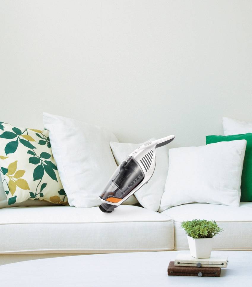 - Быстрая уборка. Беспроводной пылесос не нужно готовить к работе. Если батарея заряжена, достаточно взять его в руки, нажать на кнопку и начать убирать.