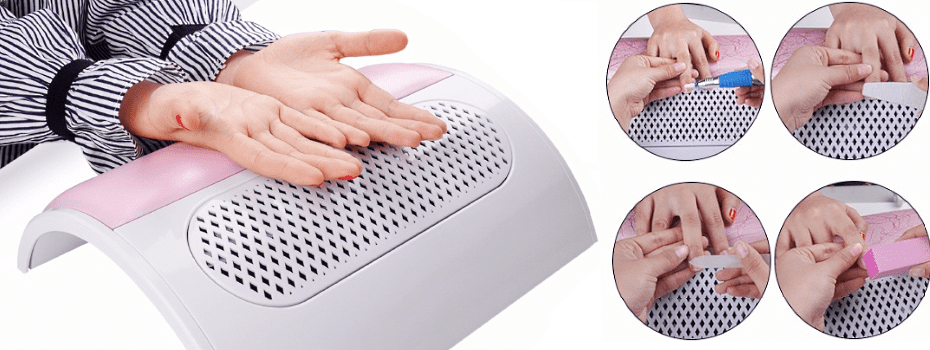 Настольные вытяжки обладают компактными габаритами и чаще всего представляют собой опорную подставку для рук клиенток. Такие пылесосы недорого стоят, они удобны, просты в применении и при этом достаточно эффективны. Настольные модели идеально подходят для небольших салонов красоты и мастеров на дому. Современные устройства часто оснащаются таймером, подсветкой и мягкими накладками для рук.