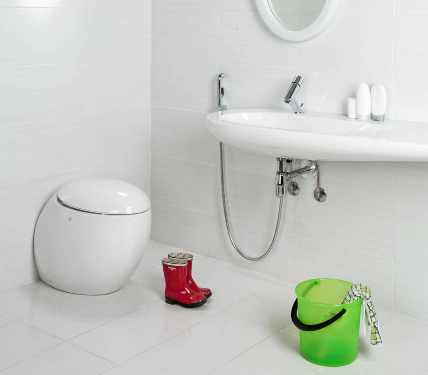 Выбирая между приобретением биде или гигиенического душа в туалет, можно смело остановиться на втором варианте. Эти изделия выполняют все функции классического биде, однако практически не занимают площади в санузле. Кроме того, их стоимость и простота монтажа приятно удивят вас.