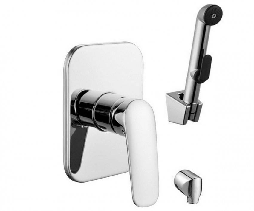 Настенный гигиенический душ со скрытым в стене смесителем смотрится очень изящно