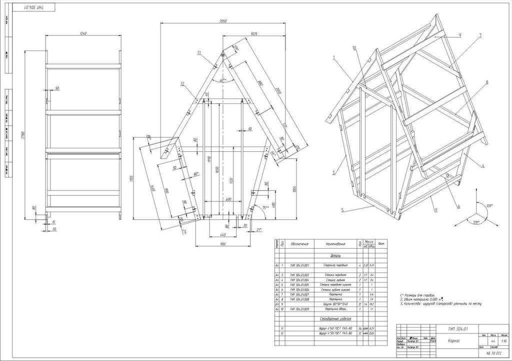 Чертеж конструкции типа шалаш.