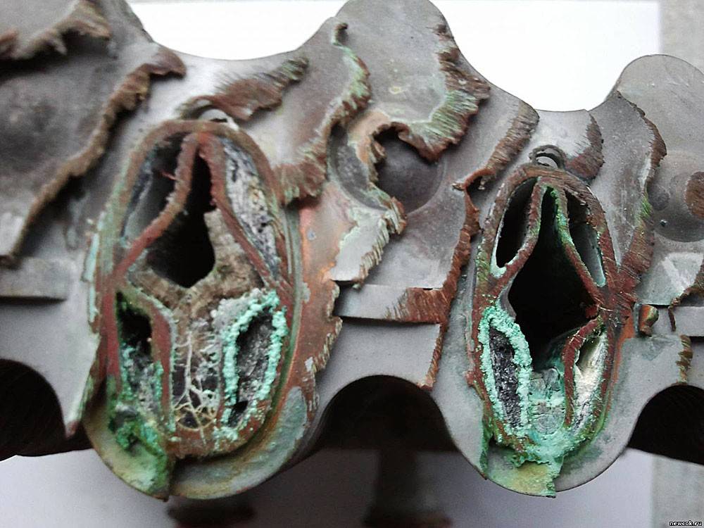 Отложение накипи внутри теплообменника
