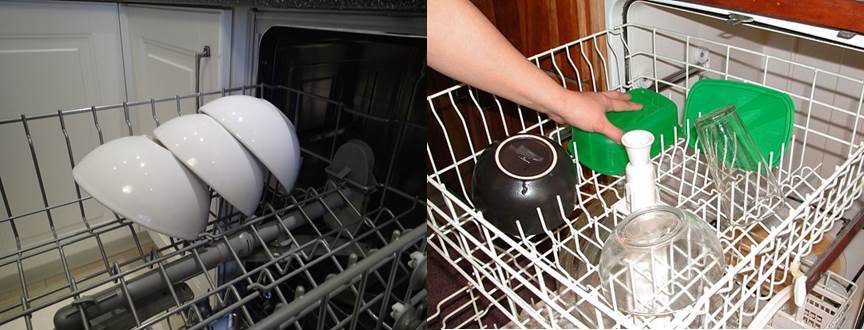 Важно правильно загрузить посудомоечную машину, аккуратно распределив и закрепив всё, что легко бьётся, острое и маленькое − в верхней части, тарелки − в среднем лотке и большую посуду − в нижнем отделении
