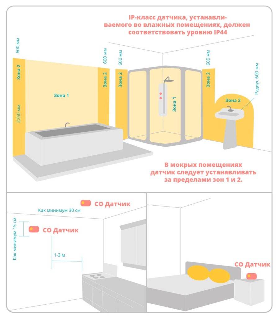 Стоит учитывать следующие параметры при монтаже автономного датчика угарного газа: