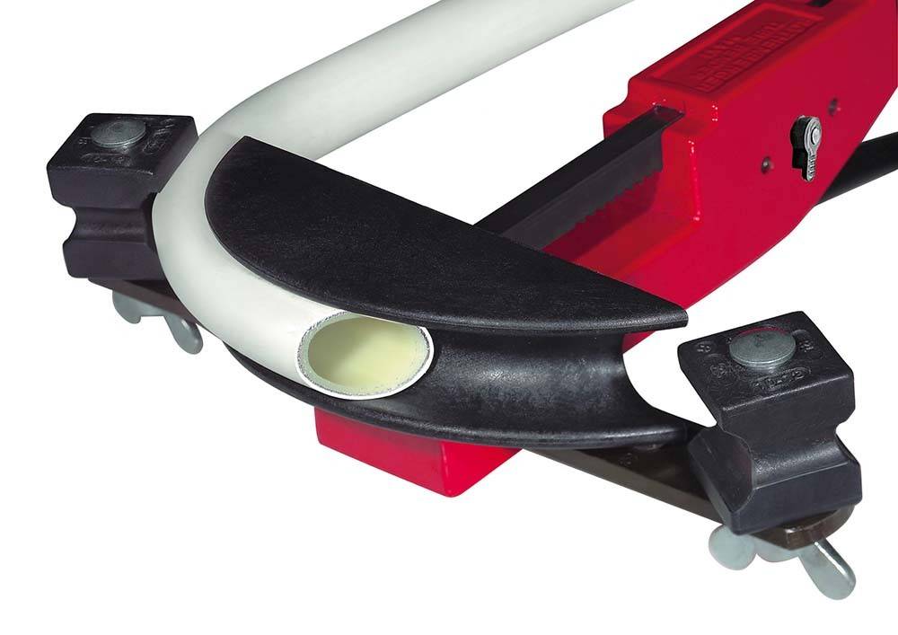Трубогиб — часто применяемый при монтаже металлопластика инструмент, позволяющий вручную изменить наклон эластичной трубы для максимально плотного сцепления. Чаще всего применяется в случае, если стандартная округлая форма должна быть изменена на овальную. Это простой и безопасный в бытовом применении прибор, который позволяет минимизировать риски деформации изделия или его разрушения. Работает практически со всеми видами сечений.
