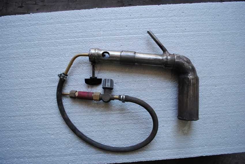 - К торчащему из ручки концу трубки нужно прикрепить кран, снятый, например, со старого автогена. Место соединения следует герметизировать при помощи ФУМ-ленты или силикона.