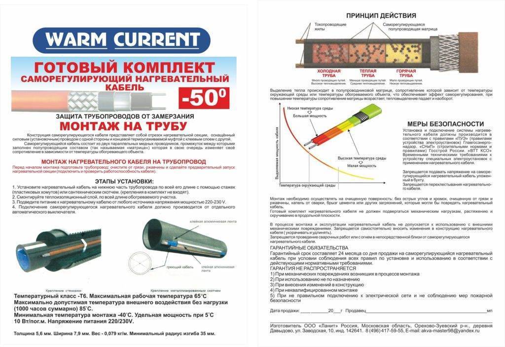 - Длина электрокабеля должна полностью совпадать с протяженностью трубопровода.