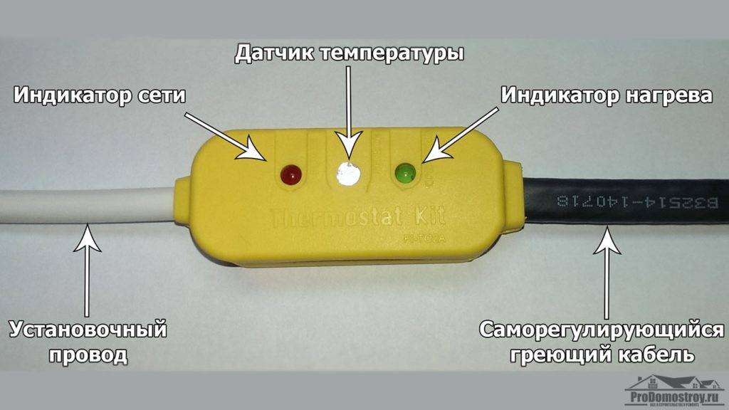 Даже если вы выбрали саморегулируемый тип кабеля, для дополнительной минимизации расходов на электроэнергию, установите температурный датчик. Установите на нем следующие параметры – включение при температуре +3°С, выключение при +13°С. Такой режим позволит продлить и срок службы нагревателей, ведь они имеют определенный ресурс рабочих часов;