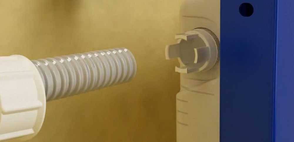 В закрепленную инсталляцию можно ставить соединительные элементы — патрубки, соединительные муфты. Все они идут в комплекте, просто закрепляются на своих местах.