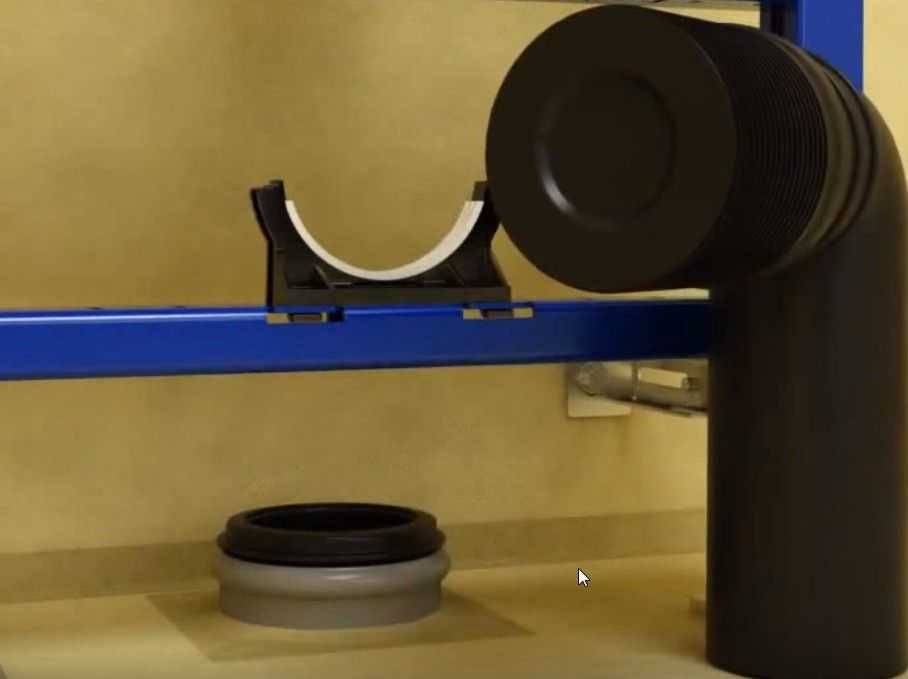 Унитаз надевается на штыри, его выпуск заходит в пластиковый раструб. Соединение герметичное, дополнительных мер не требуется. На этом установка унитаза с инсталляцией закончена.