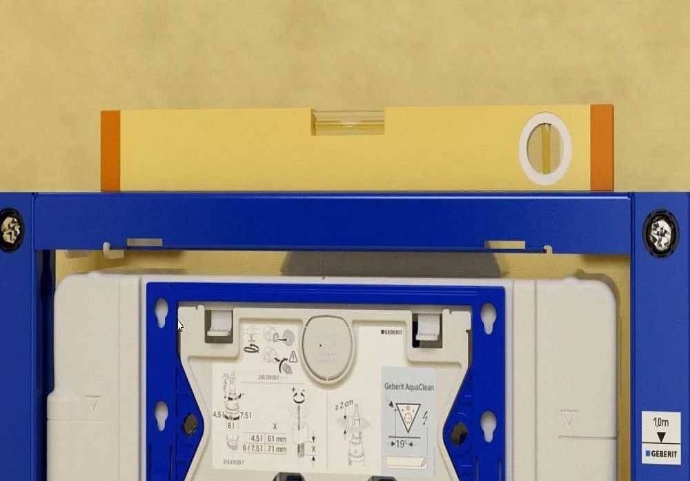 При помощи пузырькового уровня проверяется горизонтальность и вертикальность установки инсталляции для подвесного унитаза.