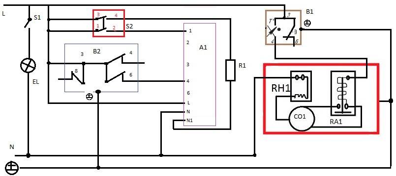 А1 – блок индикации В4-01-4,8 блок индикации М4-01-4,8, В1 – терморегулятор К-59 L2174, терморегулятор ТАМ 133-1М, EL –лампа освещения холодильной камеры, S1 – выключатель ВМ-4,8 , S2-выключатель, B2- терморегулятор К-56 L1954, терморегулятор Там145-2м-29-2,0-4,8-9-А, R1-нагреватель замораживания HX -01, RH1-тепловое реле компрессора, RA1-пусковое реле компрессора, CO1 – электродвигатель компрессора