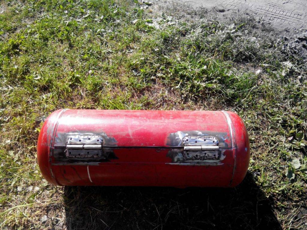 - Положить емкость на бок. Так намного удобнее распилить газовый баллон.