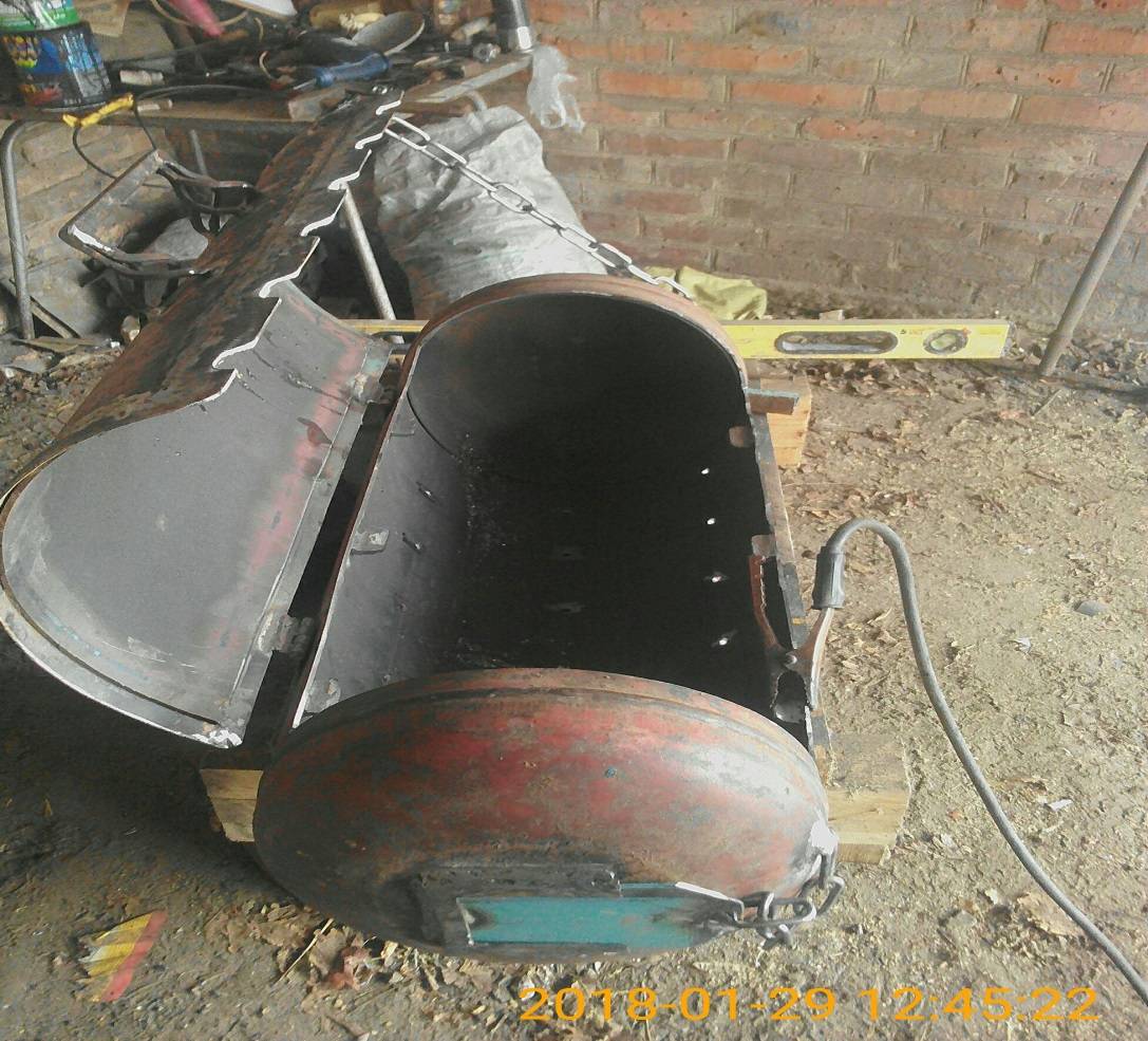 Соорудить жаровню из трубы чуть сложнее. В том плане, что нужно будет заварить торцы. Все остальные операции ничем не отличаются. Даже конструкции точно такие-же.
