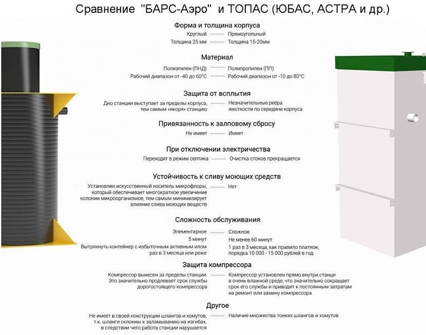 Сравнение характеристик аэробного септика БАРС-Аэро и ТОПАСовИсточник erkas.ru