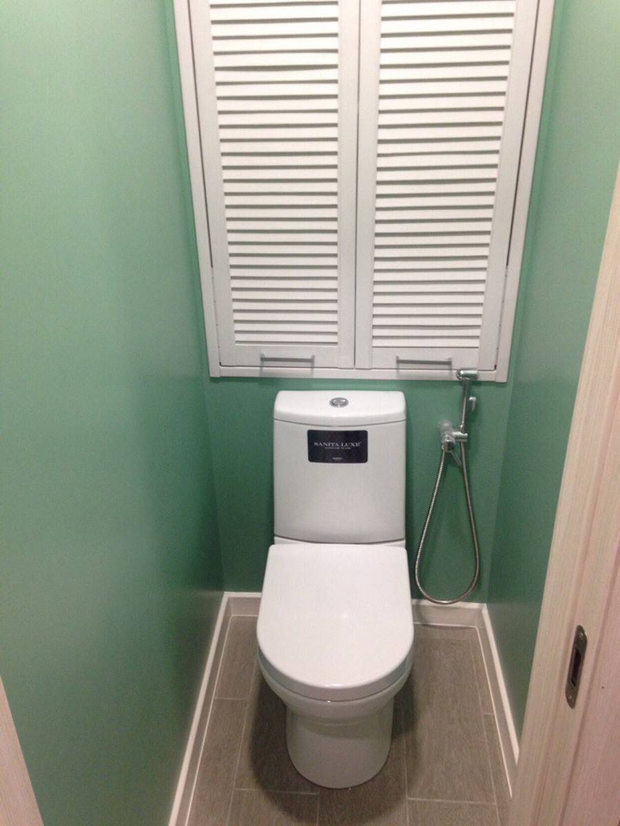 | Дополнительные сложности (труба, отходящая от унитаза, помешает полному опусканию жалюзи, придётся мастерить для низа отдельный короб из пластика) | ||