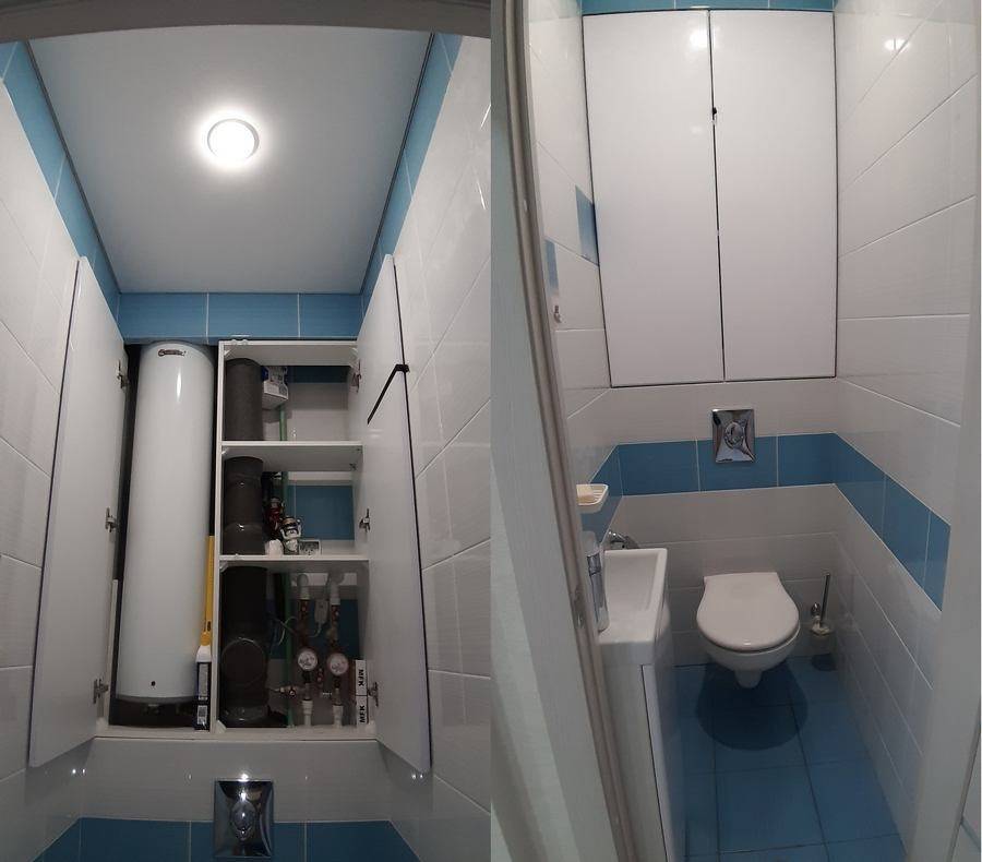 - В случае прорыва труб шкаф не затруднит доступ к месту аварии. Замена приборов учета в туалете с сантехническим шкафом не составит неудобств.