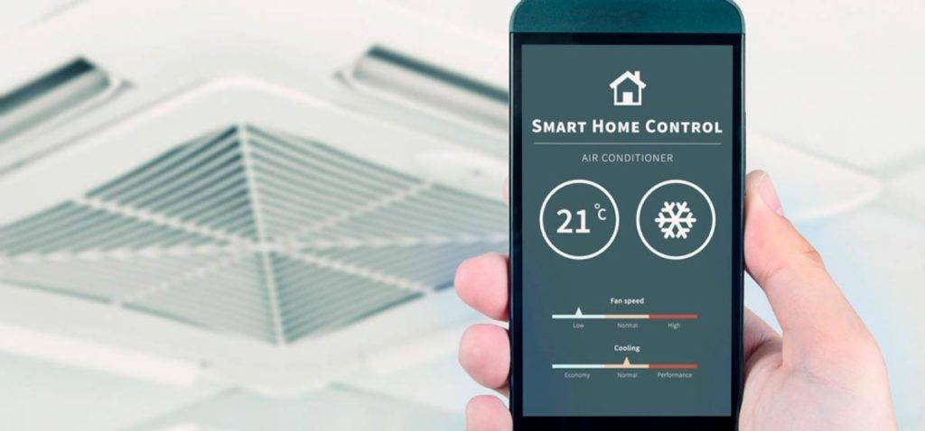 В основе управления кондиционером умного дома и других выше перечисленных компонентов используется электронный модуль. Все функции система выполняет автоматически. Базой служат заданные настройки. При этом роль людей сводится лишь в установлении необходимых параметров, периодической проверке и контроля, а также наблюдения исправности.