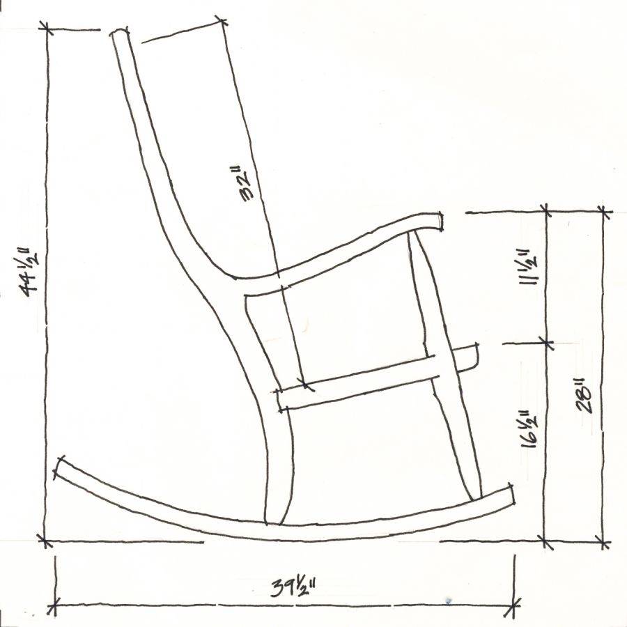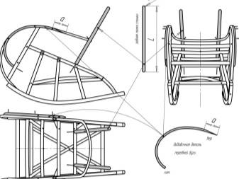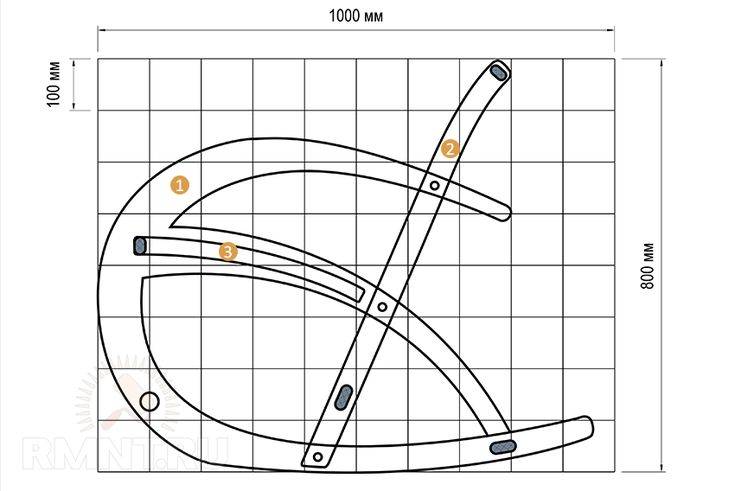 1. Сначала делаются чертежи в соответствии с дизайном изделия. Для этого можно взять готовый стул и перенести этот эскиз, но кроме этого продумать способ крепления закругленных полозьев.