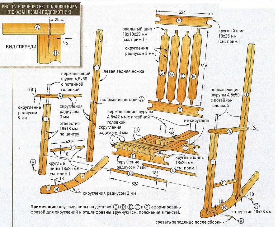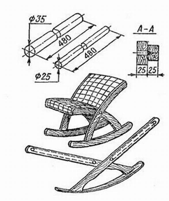 Для создания простого и удобного кресла — качалки необходимо подготовить: