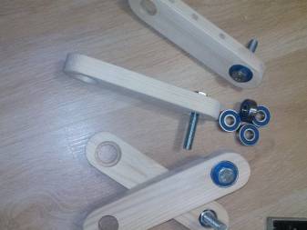 Стальная полоса размерами 6 на 60 миллиметров разрезается на две равные части. Из нее, а также подшипников и болтов с гайками создаются маятники в количестве 4 штук.