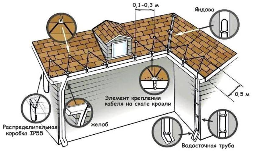 Монтаж обогрева водостоков и кровельных карнизов осуществляется согласно следующим правилам: