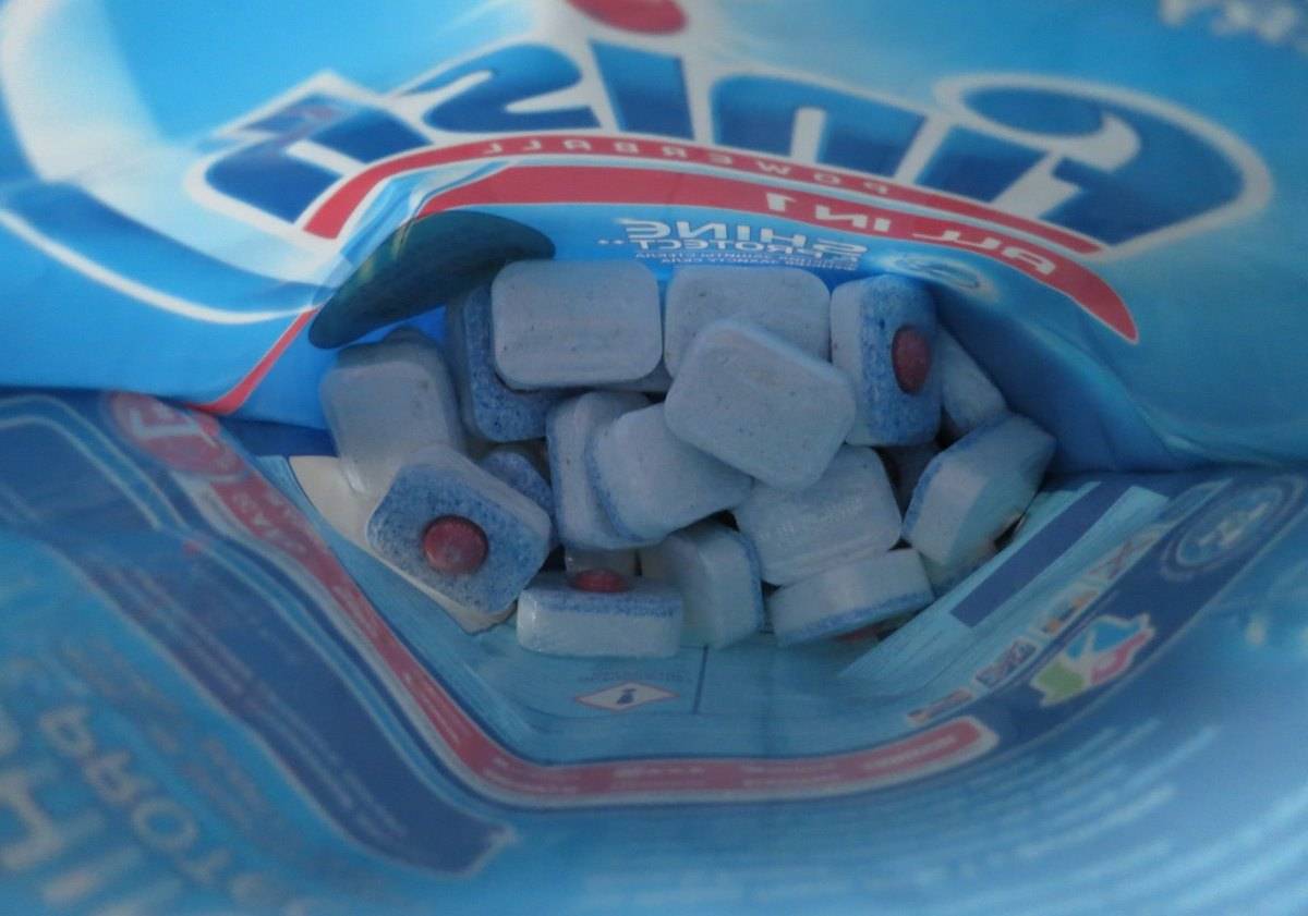 Чтобы таблетка эффективно сработала, важно не трогать ее мокрыми руками, а также держать отсек для моющих средств абсолютно сухим