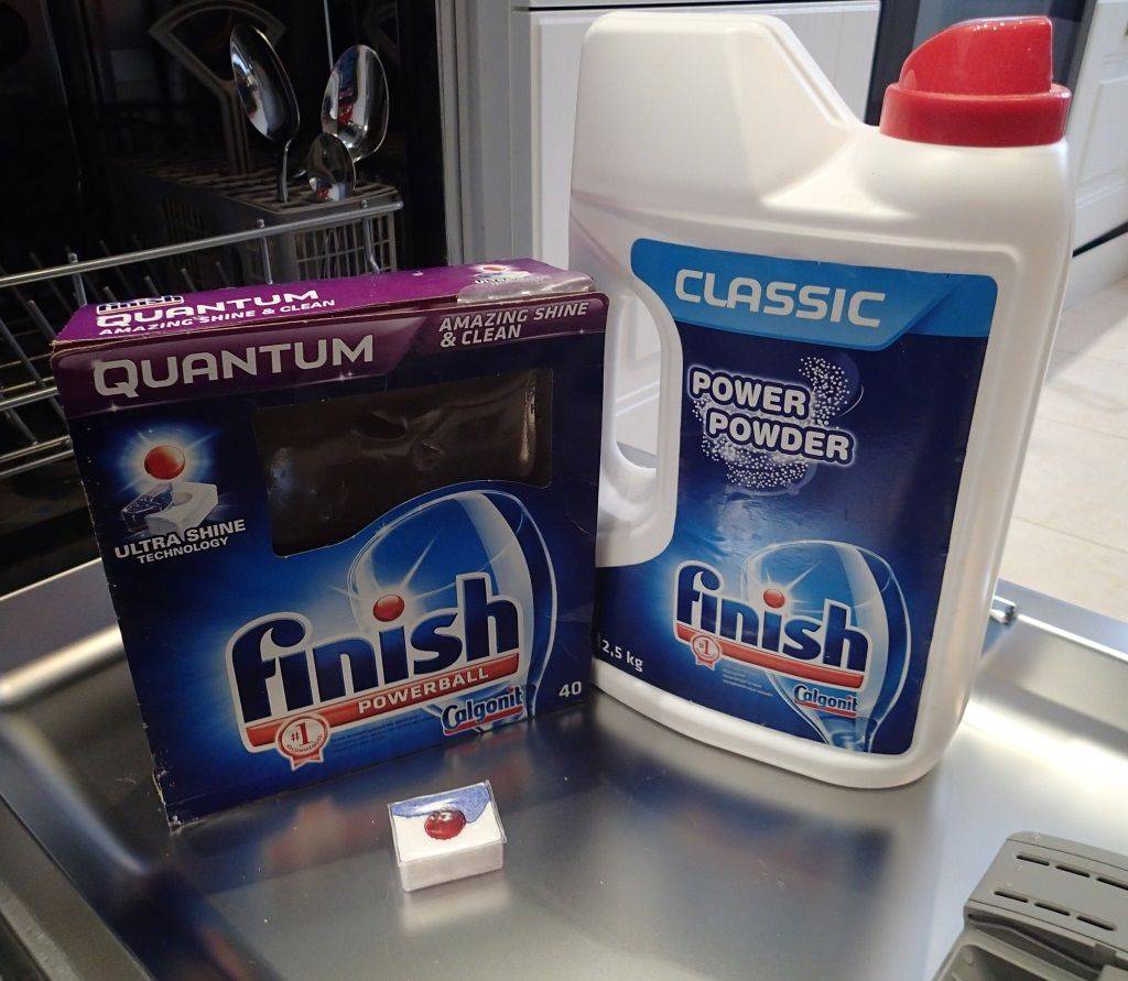 В итоге – мойку придется перезапускать; Если после мойки вы увидели на чашках налет от чая или кофе, то виной тому стали не таблетки, а жесткость воды. То есть, веществ для смягчения воды в Финише оказалось недостаточно, и придется добавить в мойку немного поваренной соли; Многие домохозяйки рекомендуют добавлять в машину уксус или лимонную кислоту – для большего блеска. Но, с Финишем этого делать не придется, так как в его составе уже есть более эффективные заменители этих компонентов, и все бокалы будут блестеть как новые; Чтобы посудомоечная машина прослужила вам верой и правдой как можно дольше, минимум раз в полгода проводите ее полную чистку проточной водой, или используйте для этого таблетки Финиш на «холостом» режиме мойки без посуды.