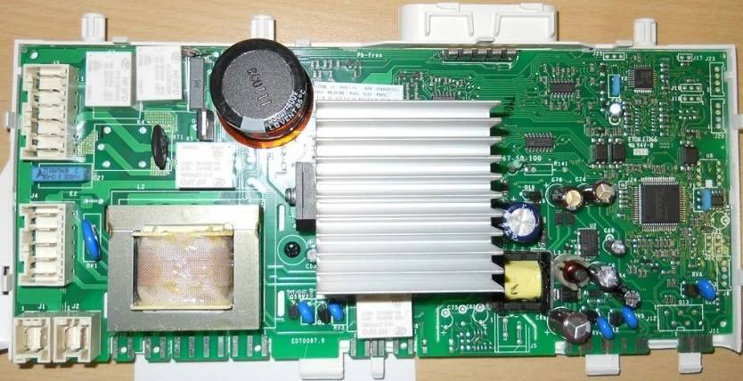 Другой вариант поломки – неисправный модуль управления. Управляющая плата координирует эксплуатацию машинки, считывает и передает команды от одного элемента к другому. Когда электронный контроллер начинает притормаживать, взаимосвязь нарушается и система выдает ошибку. Причиной будет перегорание резисторов, светодиодов, симисторов или варисторов.