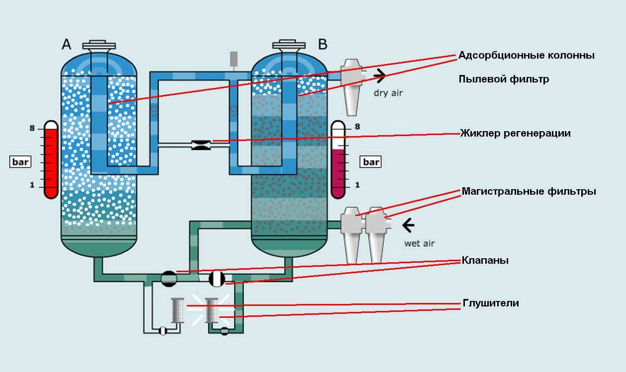 Высокие энергетические затраты – основной недостаток принципа адсорбции. Тем не менее, он является достаточно эффективным и популярным вариантом нормализации уровня влажности.