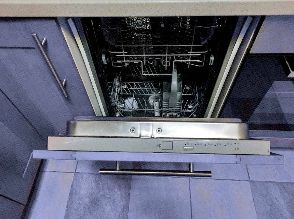 Техника занимает минимум места благодаря встраиванию в гарнитур или нишу. Эффективно справляется с очисткой посуды и других кухонных принадлежностей.