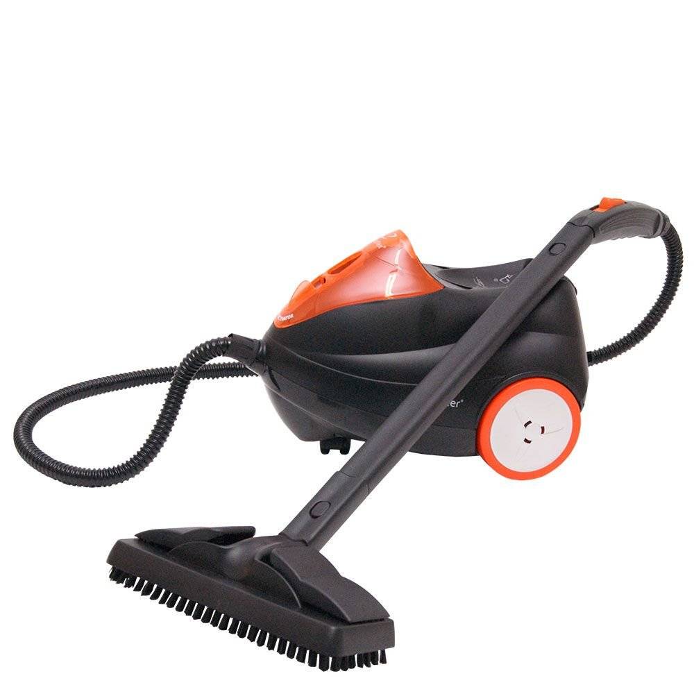 - Компактные. Подходят для очистки больших площадей за счет высокой мощности. В комплекте с прибором идут щетки для мягкой текстуры (обивка, гардин, ковролин и т.д.) и насадки для проблемных участков (щели, плинтусы). Внешне компактные паровые пылесосы ничем не отличаются от стандартных моделей. Устройства перемещаются по полу, а удобство их использования зависит от длины шнура.