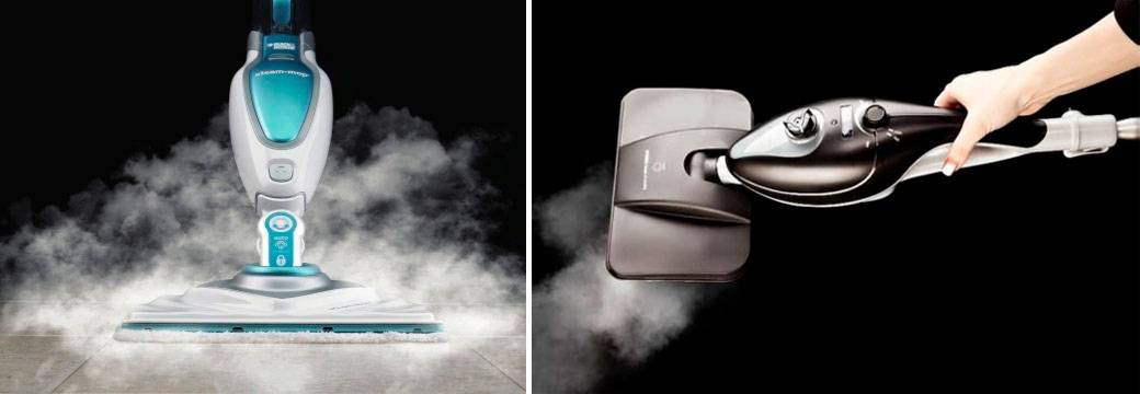 Вертикальные модели пылесосов с парогенераторами называются паровыми швабрами. Они более компактны в отличии от стандартных пылесосов и удобны в использовании.