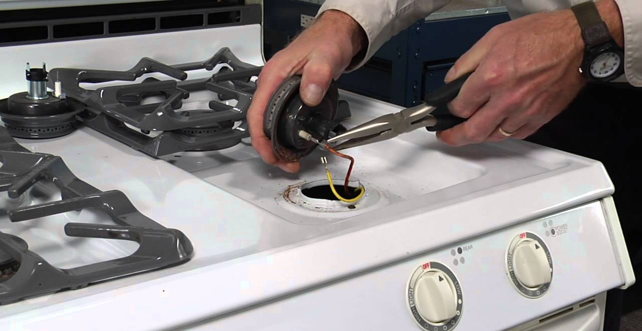 Чтобы произвести ремонт газовой плиты своими руками по поводу замены свечи, достаточно снять конфорки, открыть крышку печки (открутив несколько болтов), и поменять электрод на новый.