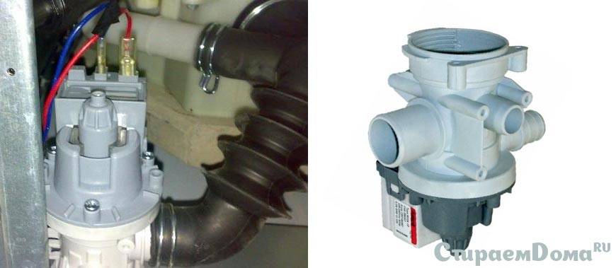 Сливной насос или помпа стиральной машины отвечает за перекачку воды. Это неразборная деталь с прочным корпусом, но ее может повредить посторонний предмет, проскочивший через фильтр.
