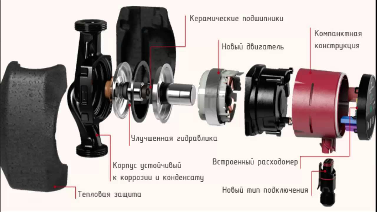 Существует два основных типа насосов – с «мокрым» и «сухим» роторами. «Мокрый» ротор отделен от воды специальными уплотнительными кольцами, между которыми находится тонкая водяная пленка. При износе кольца истираются и плотнее прижимаются друг к другу, что гарантирует герметичность конструкции на протяжении нескольких лет. Охлаждение и смазка осуществляются за счет рабочей жидкости. Насосное оборудование этого типа устанавливают в небольших по объему теплоносителя системах, т.к. обеспечить герметичность соединений в конструкциях большого диаметра затруднительно