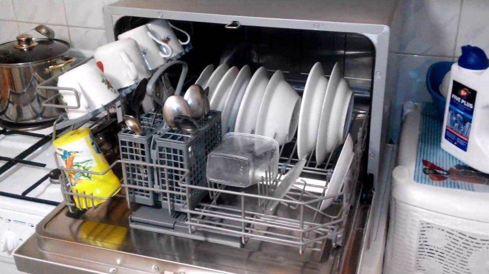 - компактные посудомойки настольного типа вместимостью до 6 комплектов.