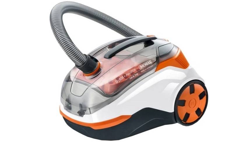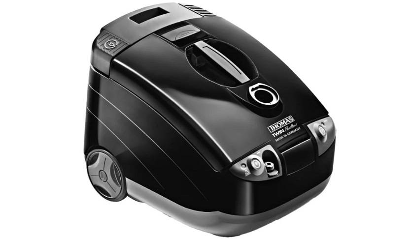 Следующая модификация в линейке представляет собой более традиционные для Thomas устройства – подходит для влажного и сухого типа уборки, для сбора мусора в нем предусмотрен мешок. Мощность мотора в пылесосе 1600 Вт и довольно большая емкость для сбора грязи – 4 л. Шум во время работы доходит максимально до 68 дБ, что очень мало. Модель подходит для сбора воды. Сетевой шнур длиной 6м. Масса довольно приличная – 11 кг.