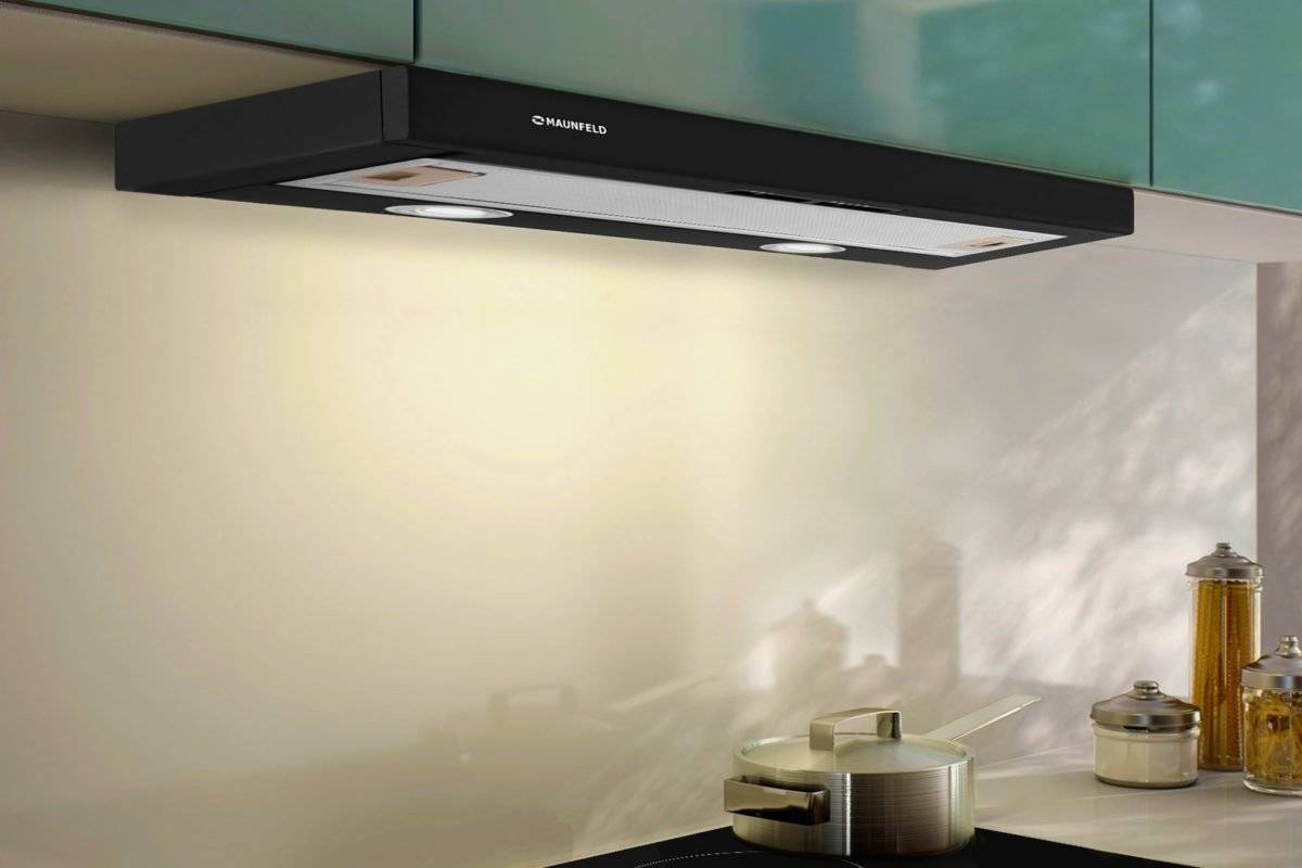 - Подвесная (плоская вытяжка, которая устанавливается над плитой);