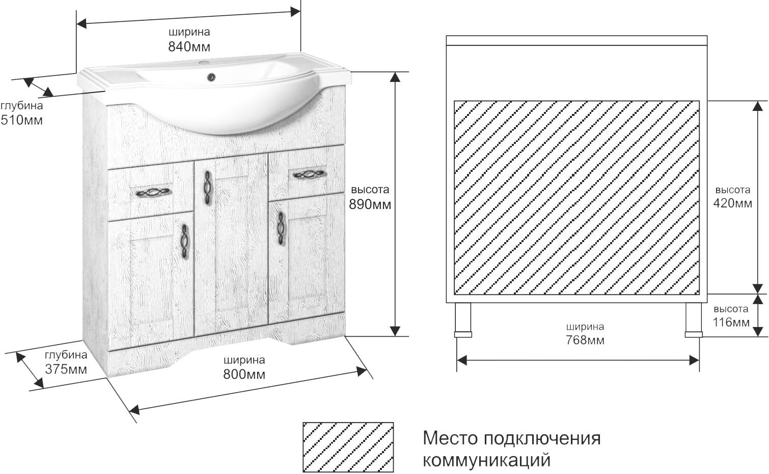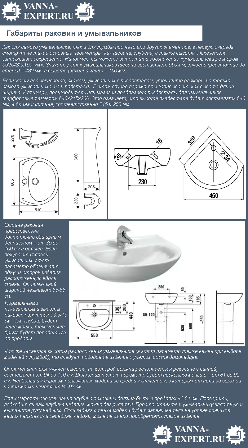 Слишком высокое или низкое расположение умывальника также не будет приемлемым.