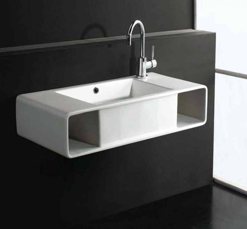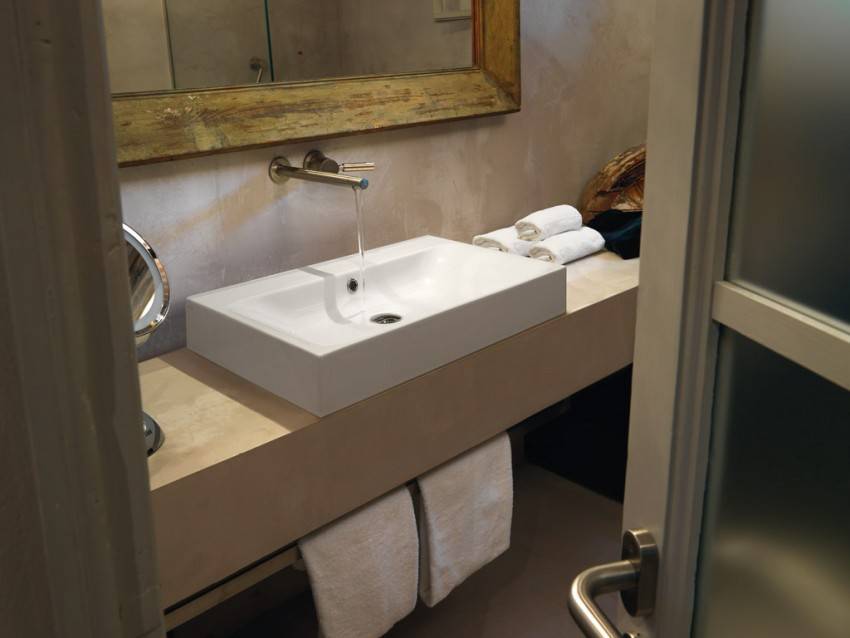 Небольшая раковина квадратной формы органично смотрится в интерьерах разной направленности.