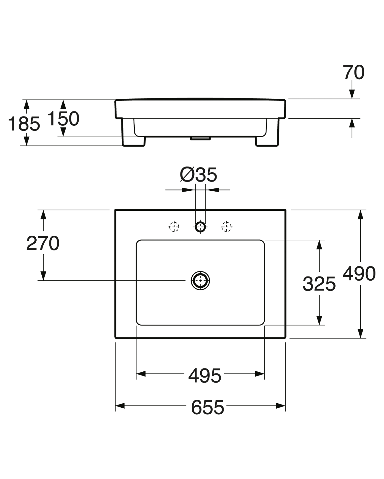 - соблюдайте предписанное расстояние между умывальником и другими элементами: не менее 70 см;
