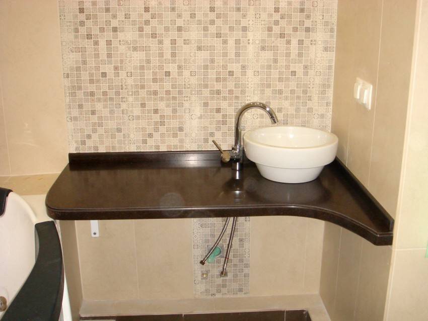 Гораздо сложнее разобраться с необходимой высотой накладной раковины, когда чаша для гигиенических процедур крепится в ванной на столешнице. С точки зрения эстетики это выглядит весьма привлекательно. В плане удобства – вопрос спорный. Столешница имеет стандартную высоту в 80-85 см. Сверху устанавливается чаша с высокими бортами. Соответственно, высота конструкции становится еще больше. Чтобы не допустить ошибки, следует выбирать столешницу пониже, чтобы вкупе с чашей ее высота составляла стандарт по СНиП.