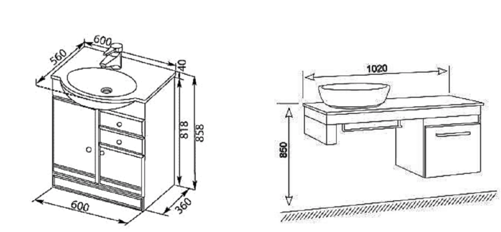 Выглядит, как чаша, врезанную в тумбу, где она и находится. Отрегулировать такие модели по высоте не представляется реальным, поэтому размер комода-подставки лучше определить еще на этапе планирования работ.