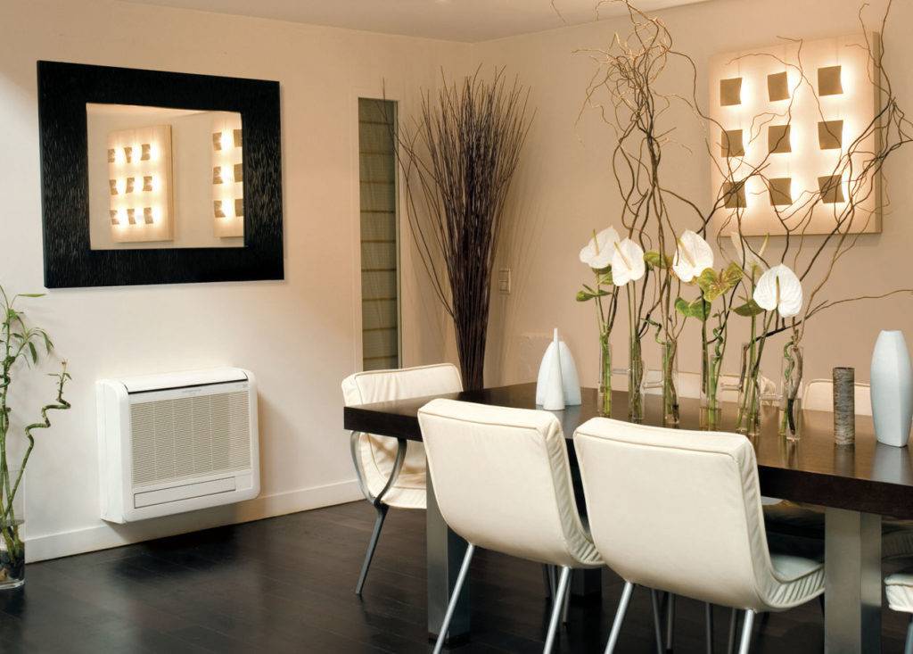 Лучшая для небольших жилых помещений. Монтаж прост, присутствует выбор варианта установки – на потолке или на стене ближе к покрытию пола. Может обеспечить равномерное распределение воздуха.